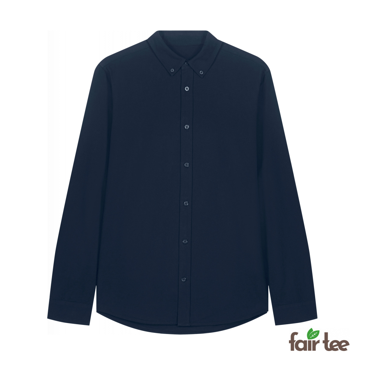 • Button-down collar with single-needle topstitching