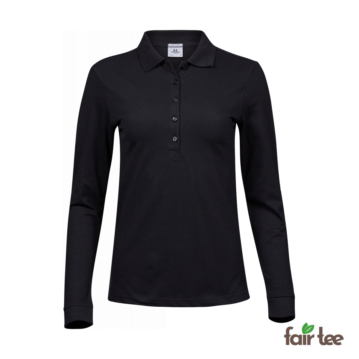 Our luxury polo with long sleeves for women. Like the short-sleeved model, it is made of cotton / elastane fabric, which makes it particularly comfortable and provides a perfect