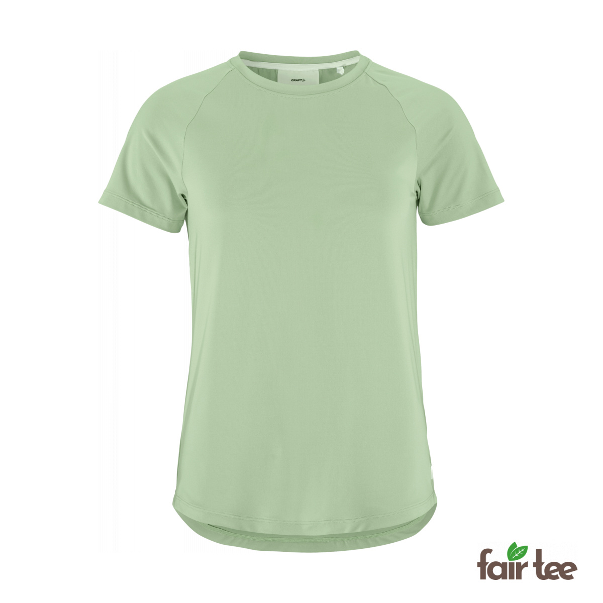 It is made from a stretchy polyester blend with a lightly brushed surface, providing a luxurious feel against the skin. The raglan sleeves and rounded hem create a feminine and flattering fit. With its versatile style and high comfort, this t-shirt is a must-have in any wardrobe.