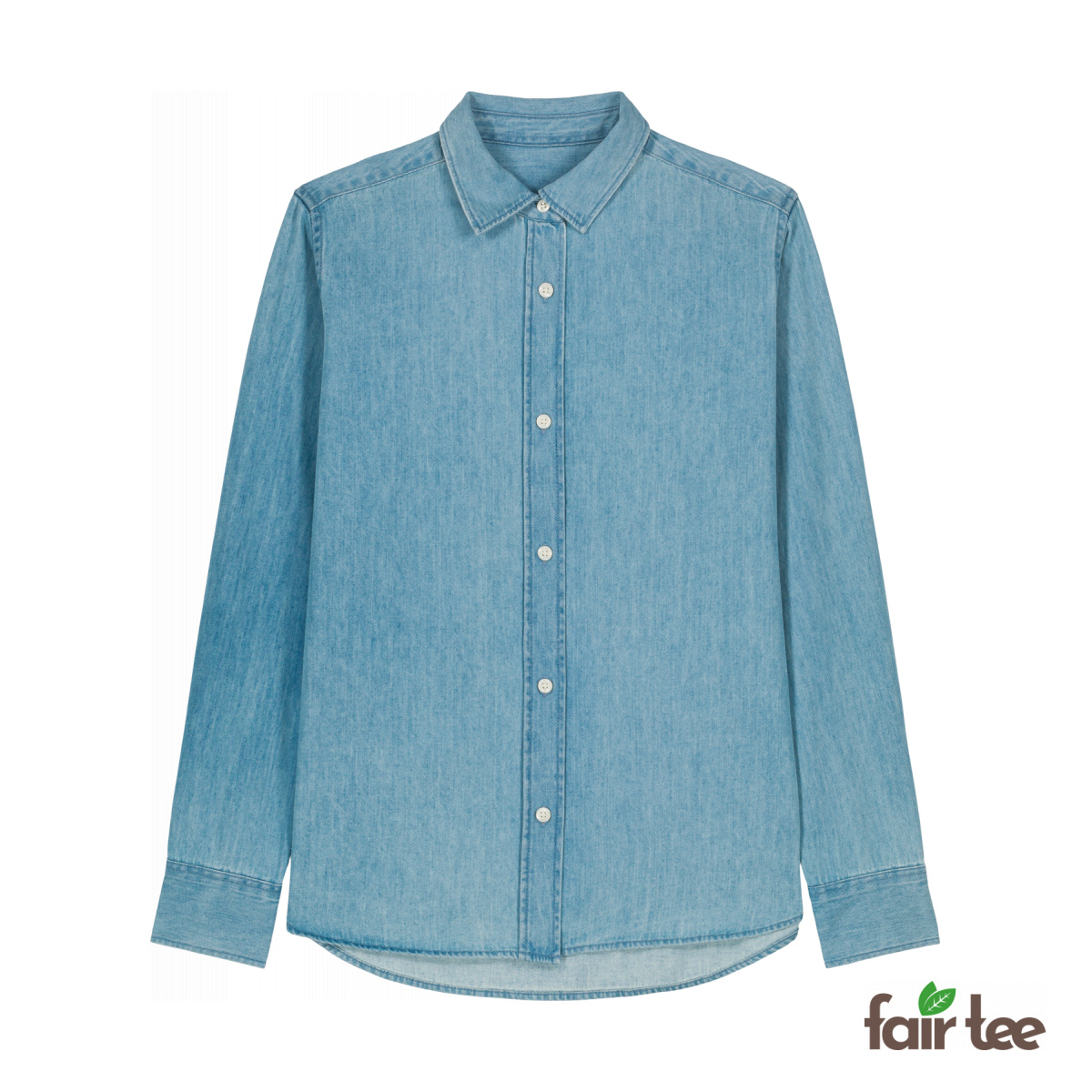 This women's denim shirt from Stanley/Stella features a sleek design with a point collar and subtle stitching for a classic look. The shirt includes a contrast button on the collar stand and a front placket with stitching on both sides. Forwarded shoulders and a back yoke ensure a flattering fit, while cuffs with two buttons and straight corners complete the style. The shirt has a faded effect on the seams due to garment washing, giving each piece a unique appearance.